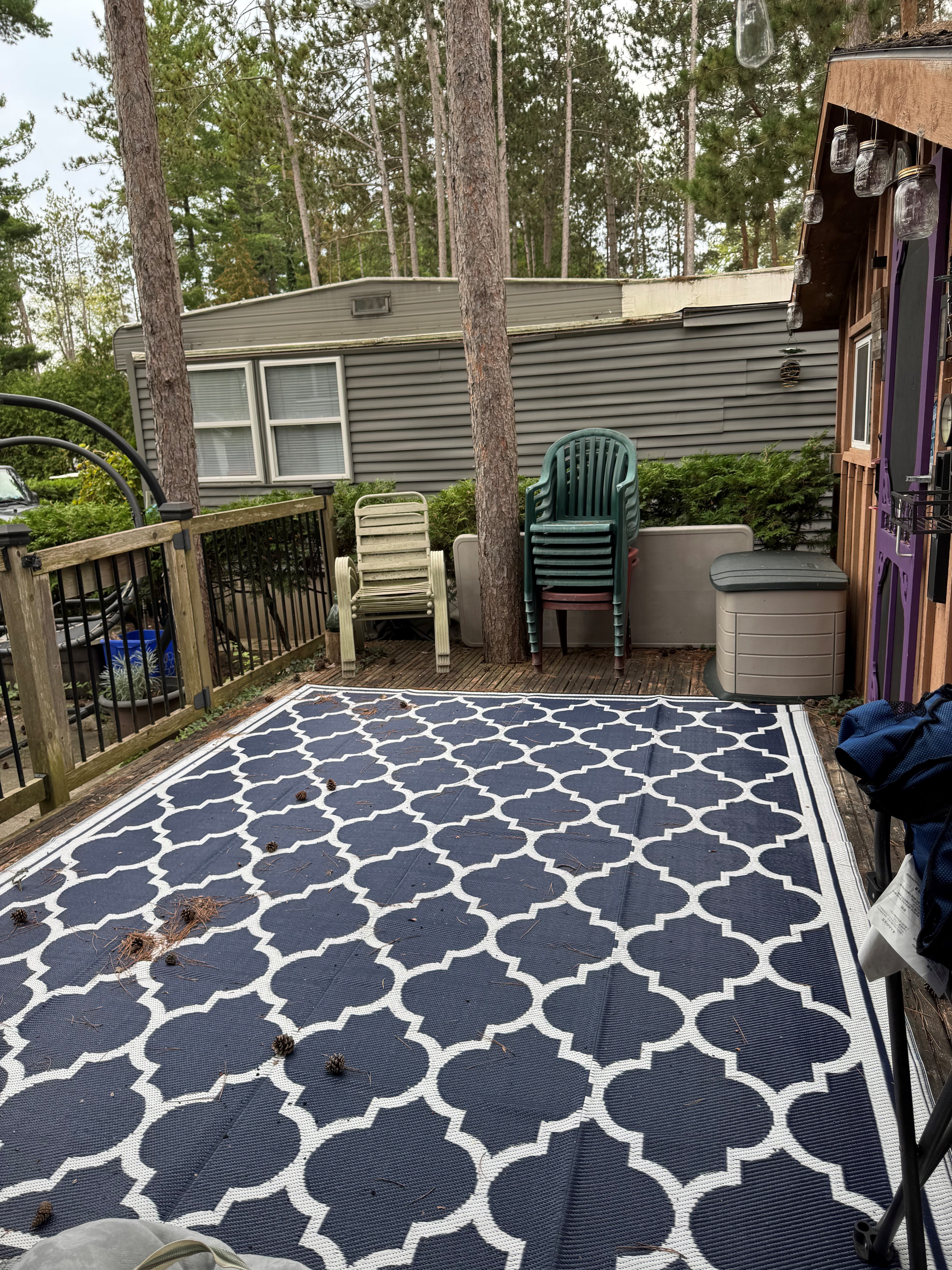The open deck is 16ft x 10ft, and there is a covered deck measures 8ft x 10ft for enjoying the outdoors.
